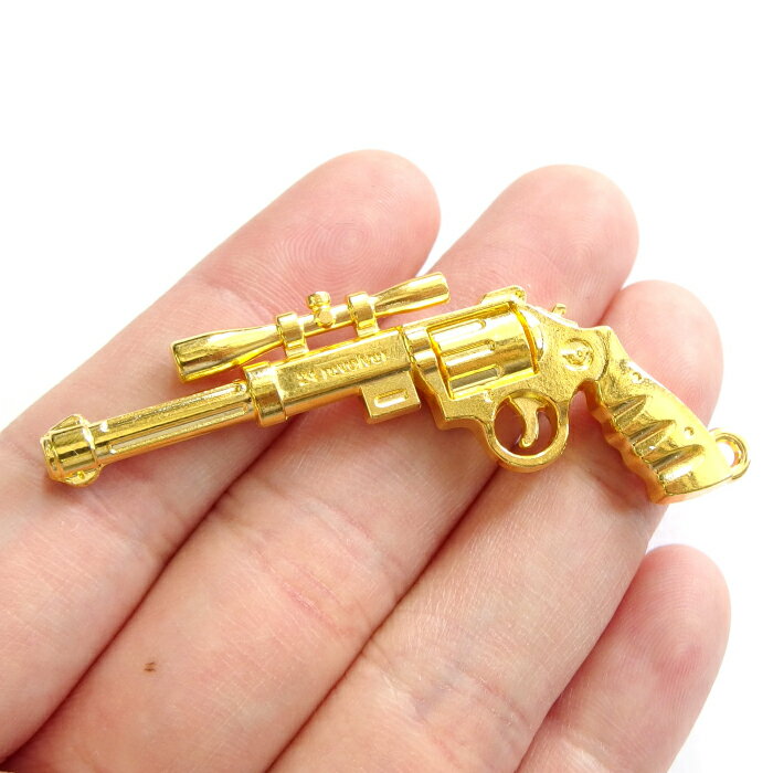 【10個】金属チャーム ピストル ゴールド 50*23 拳銃/武器/リボルバー/鉄砲/男の子/サバイバル/サバゲ— 資材/アクセサリーパーツ/手作り/材料/ハンドメイド/卸/手芸