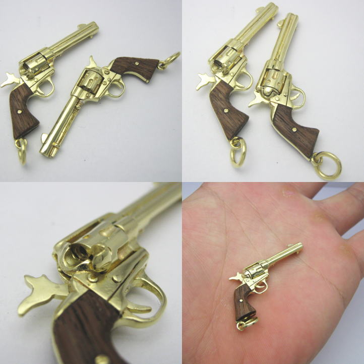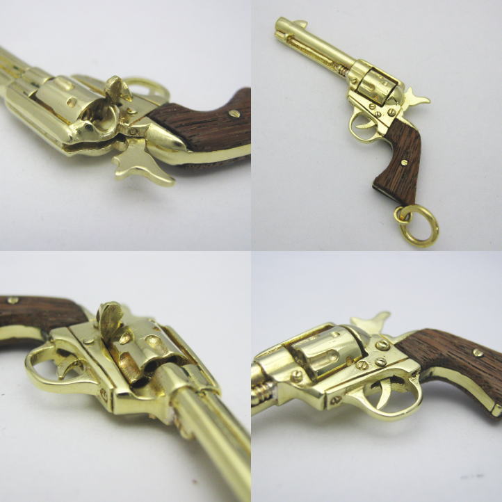 動く!回る! SAAピースメーカーシングルアクションアーミー ピストルペンダント 木製ウッドグリップ 真鍮 ブラス 武器 拳銃 ガン リボルバー